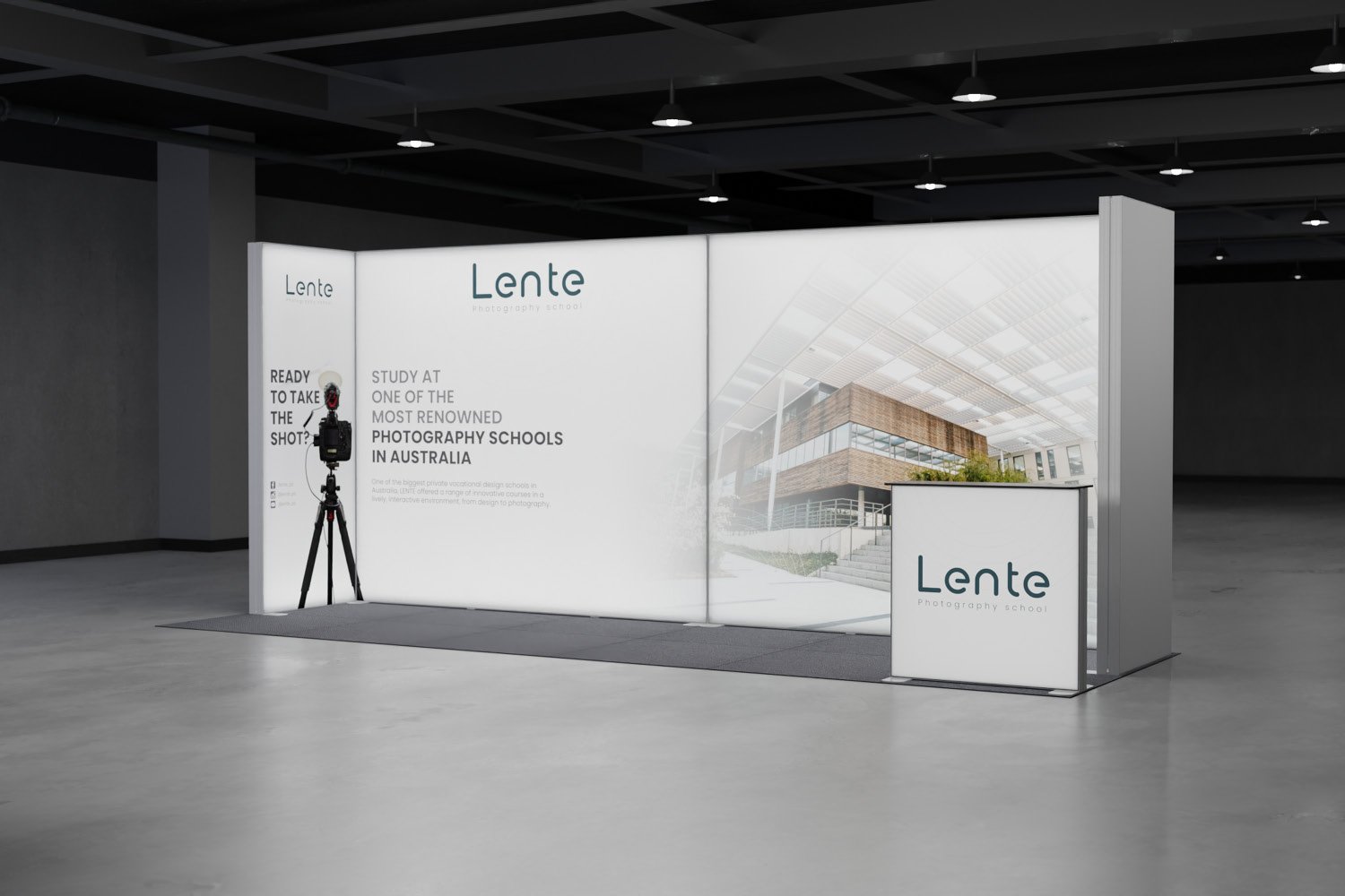 • However, it is not compatible with shell scheme booths. We recommend using this package best for peninsular and open spaces.
