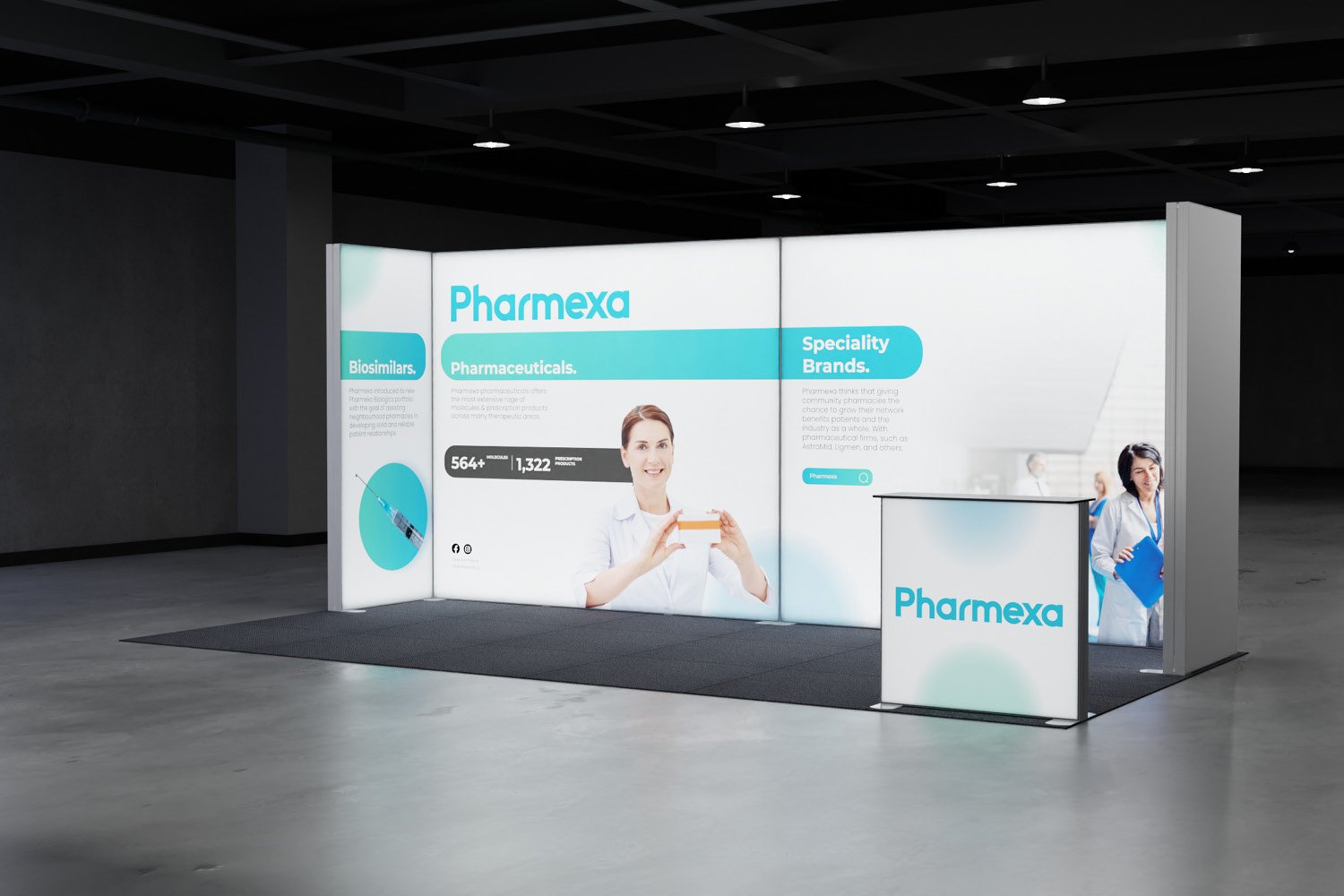 • A custom display for a peninsula booth